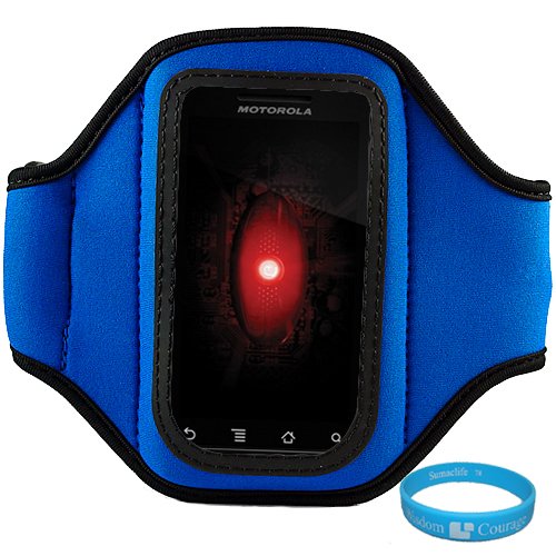 Blue Durable Moisture Resistant Premium Neoprene Protective Multi Purpose Exercise Workout Armband with Adjustable Velcro Strap for Samsung Galaxy S II (Galaxy S2 Attain 4G Android Wireless Smartphone + SumacLife TM Wisdom Courage Wristband Reviews